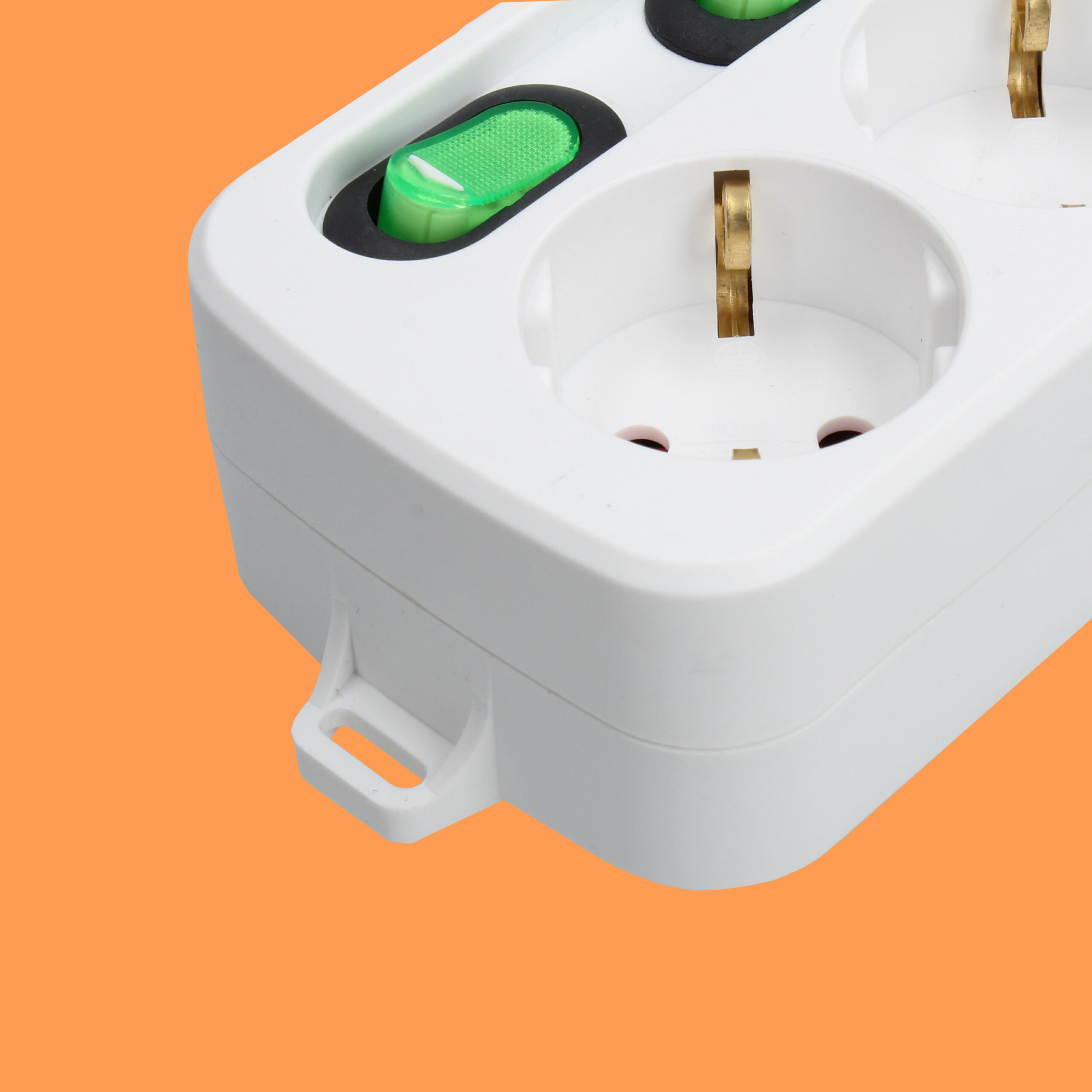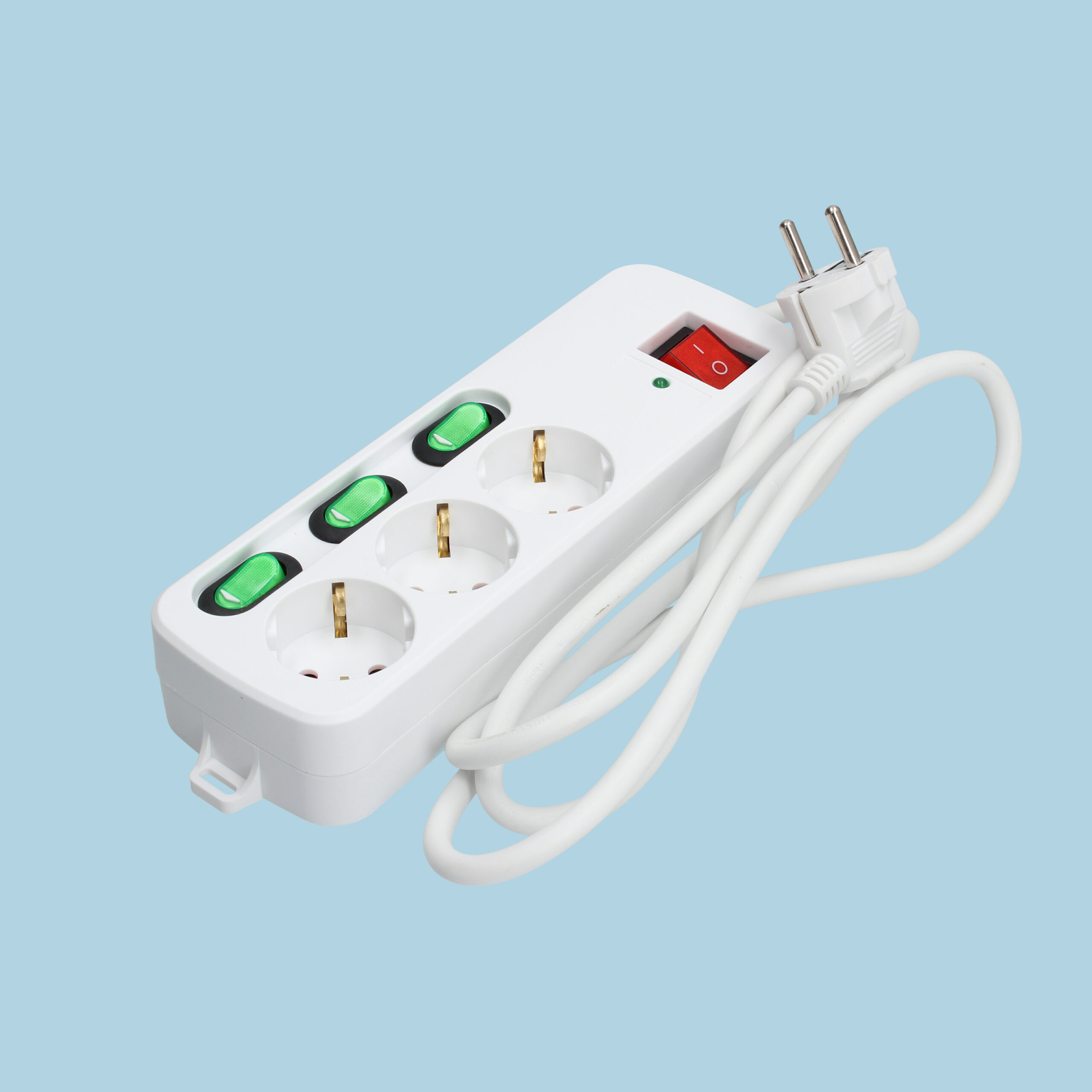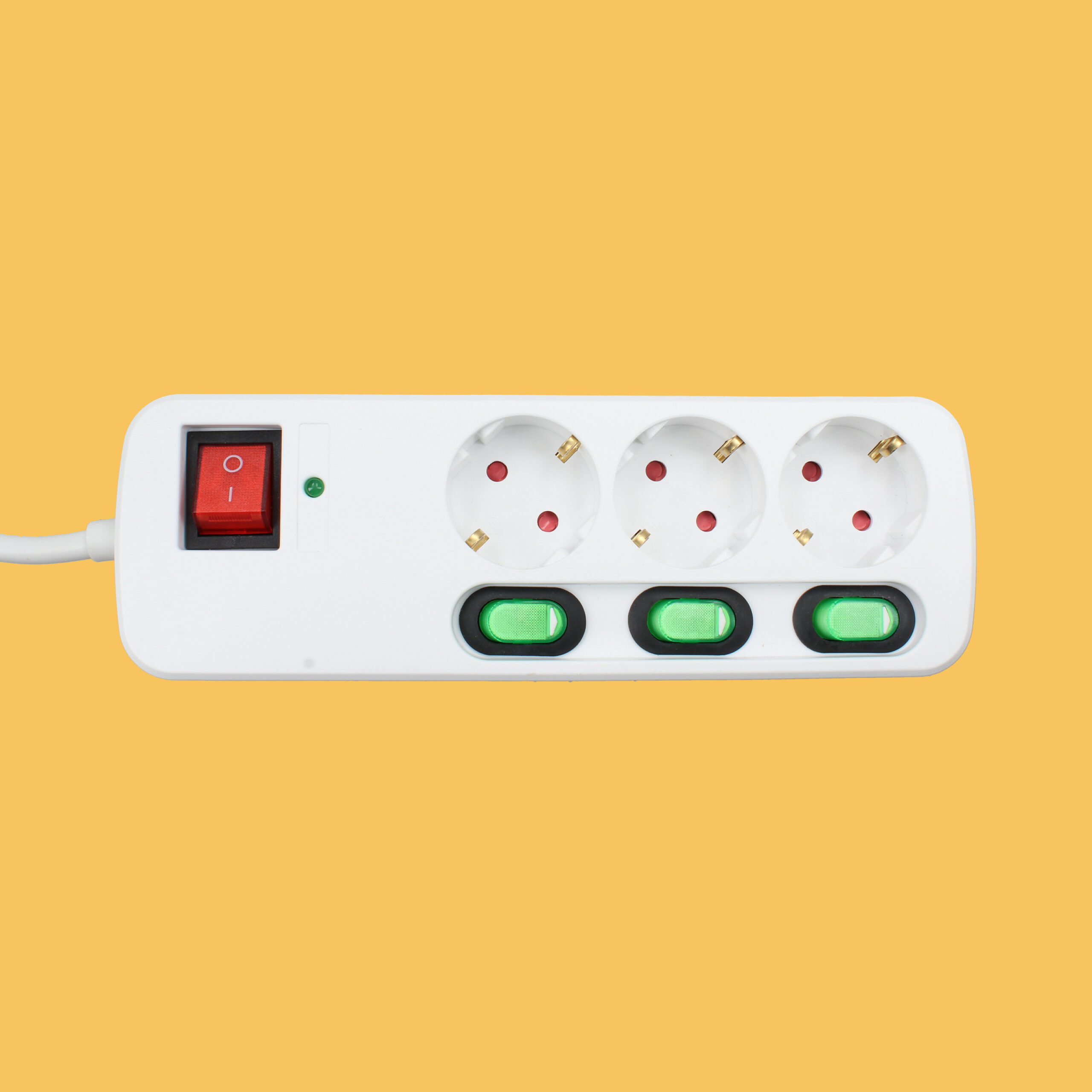 • Regleta de 3 enchufes con carcasa de plástico resistente.