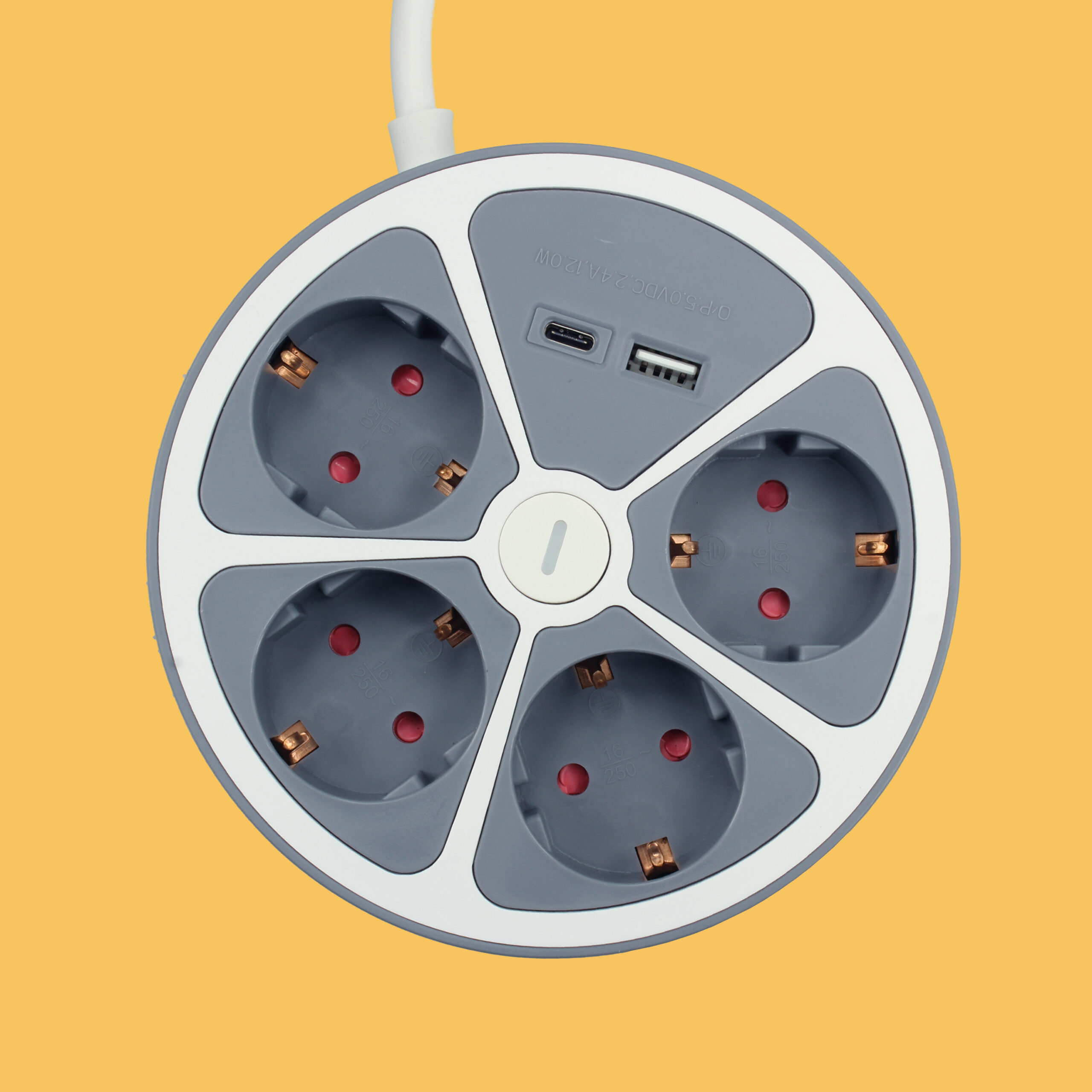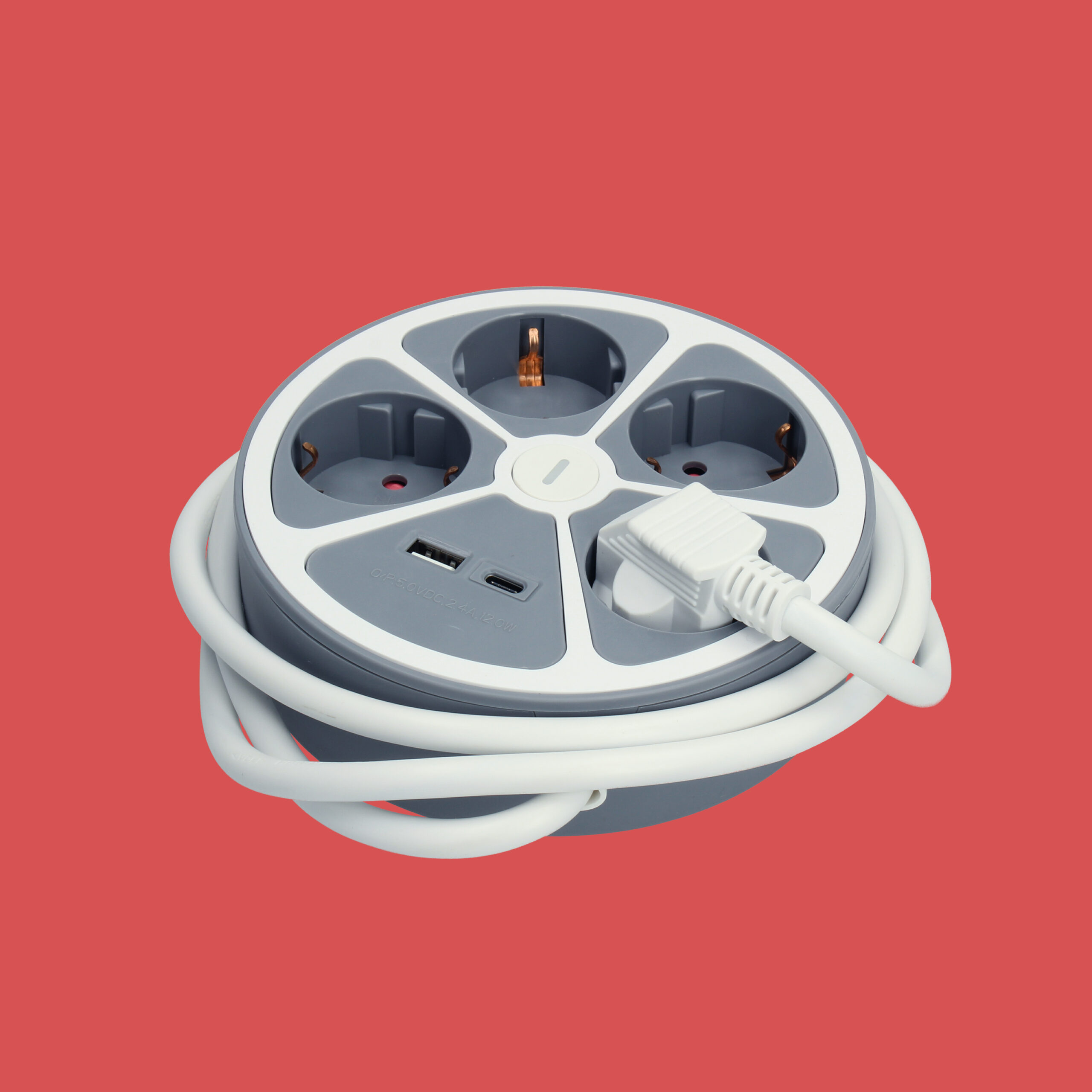 - Base múltiple con 4 enchufes y carcasa de plástico resistente.